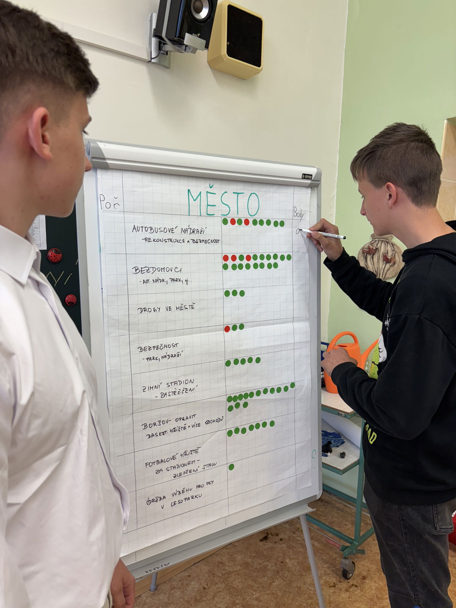 Vybraní žáci 5. až 9. tříd byli rozděleni do skupin, kde společně diskutovali o dvou hlavních tématech – „škola“ a „město“. Největší podporu získaly požadavky na výuku finanční gramotnosti a zlepšení školní Wi-Fi. Návrhy byly předány vedení školy, které přislíbilo jejich posouzení. V obdobném duchu proběhla i druhá část zaměřená na město. Největší podporu měly návrhy na rekonstrukci autobusového nádraží a výstavby basketbalového hřiště v Boršově. Výsledky na místě sledoval a závěrem okomentoval místostarosta Daniel Čmelík.