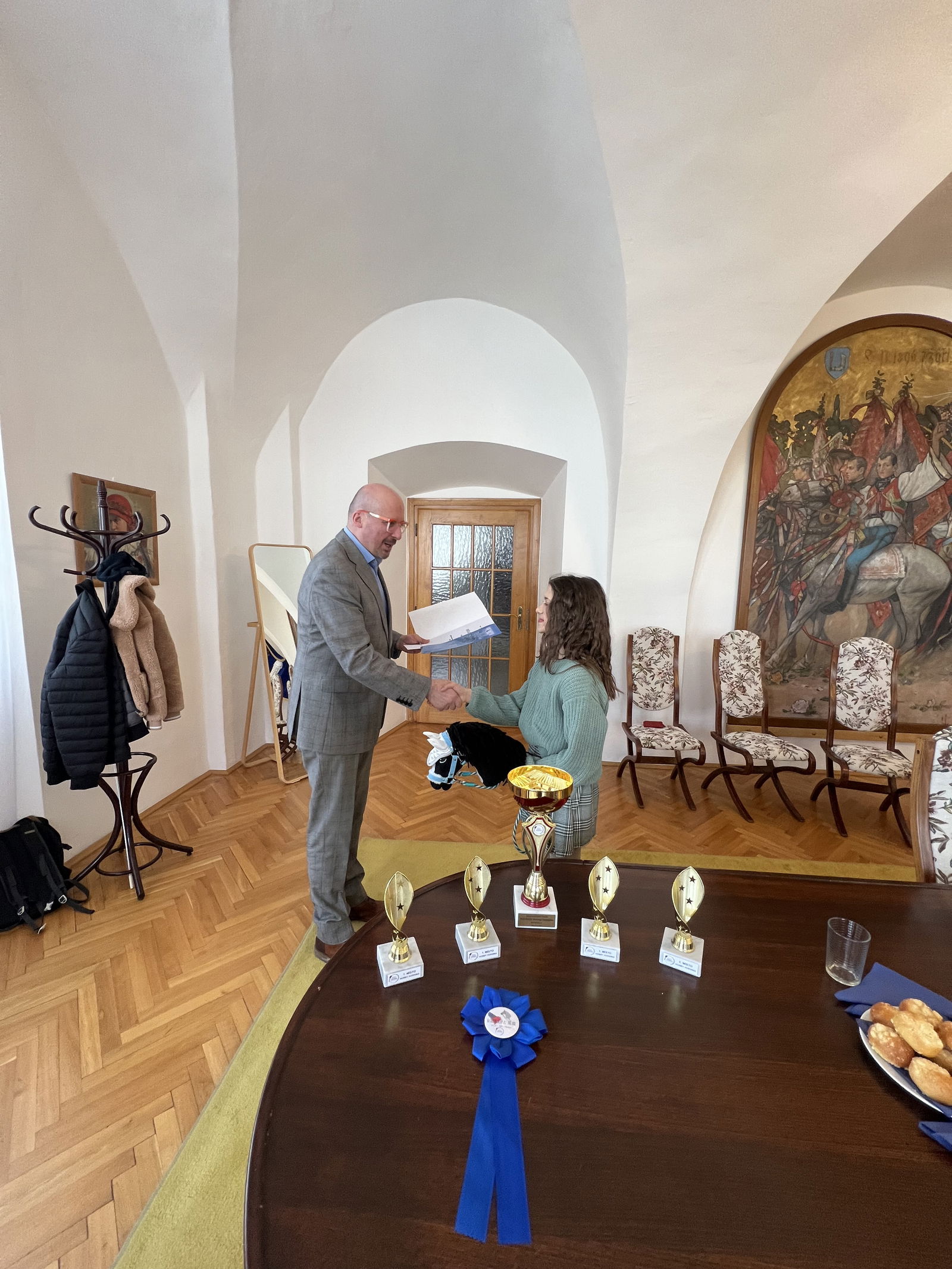 Vedení města přivítalo sportovkyni Denisu Pinterovou, která se věnuje hobby horsingu. Mladá závodnice zazářila vloni v červnu na Mistrovství České republiky v Brně, kde v náročných disciplínách získala 1. místo v Barrel Race mezi 25 startujícími a 4. místo v Parkur limit mezi 50 účastníky. Denisu společně s tatínkem přijal na radnici starosta města. František Lukl ocenil její výsledky a poté si s nimi povídal o závodech a jednotlivých disciplínách.